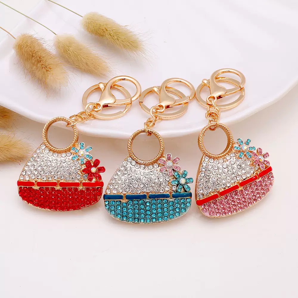 Luxury Metal large bling 3D bag keychain pendant mixed color by set