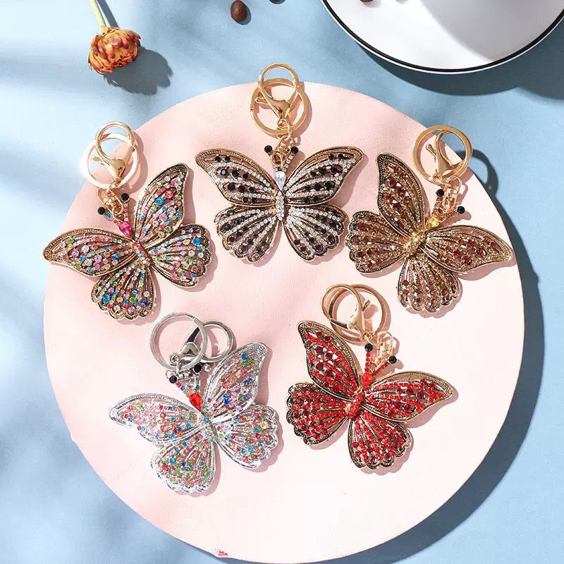 Luxury Metal large bling 3D butterfly keychain pendant mixed color by set