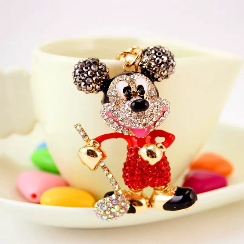 Luxury Metal large bling 3D KT Mickey Mouse keychain pendant mixed color by set